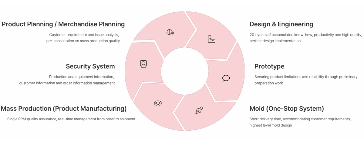 DUSSEN KOREA supports an OEM/ODM NON-STOP PROCESS.