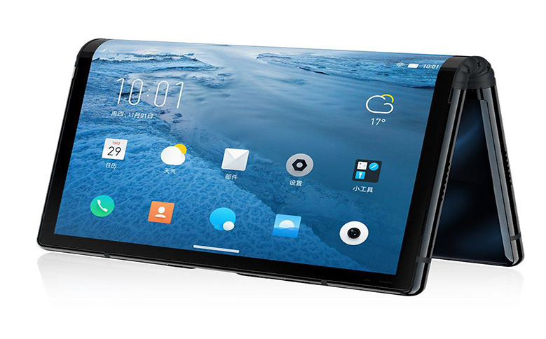 FLEXIBLE DISPLAY의 가장 기본적인 형태로는 반으로 접어 부피를절반으로 줄인 상태로 휴대할 수 있도록 하는 방법입니다.