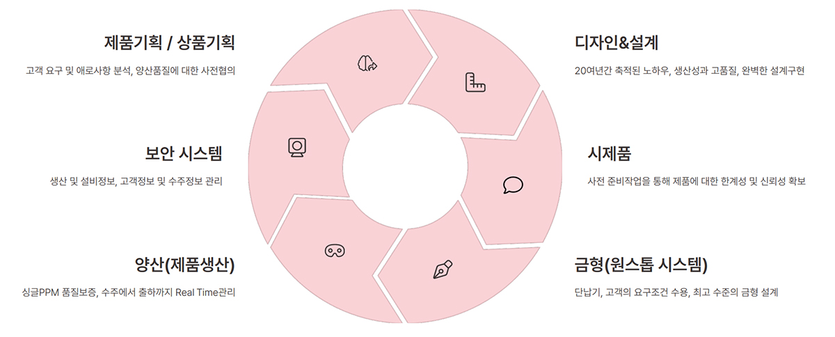 듀센코리아는 OEM / ODM NON-STOP PROCESS를 지원합니다.